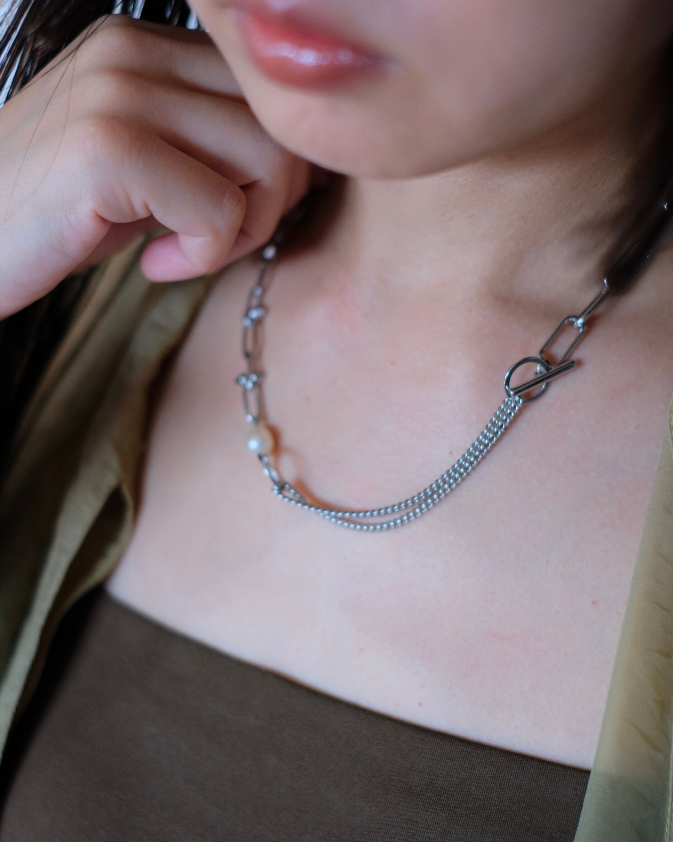 じゃらっとしたチェーンや太さの異なるチェーンをプラス。