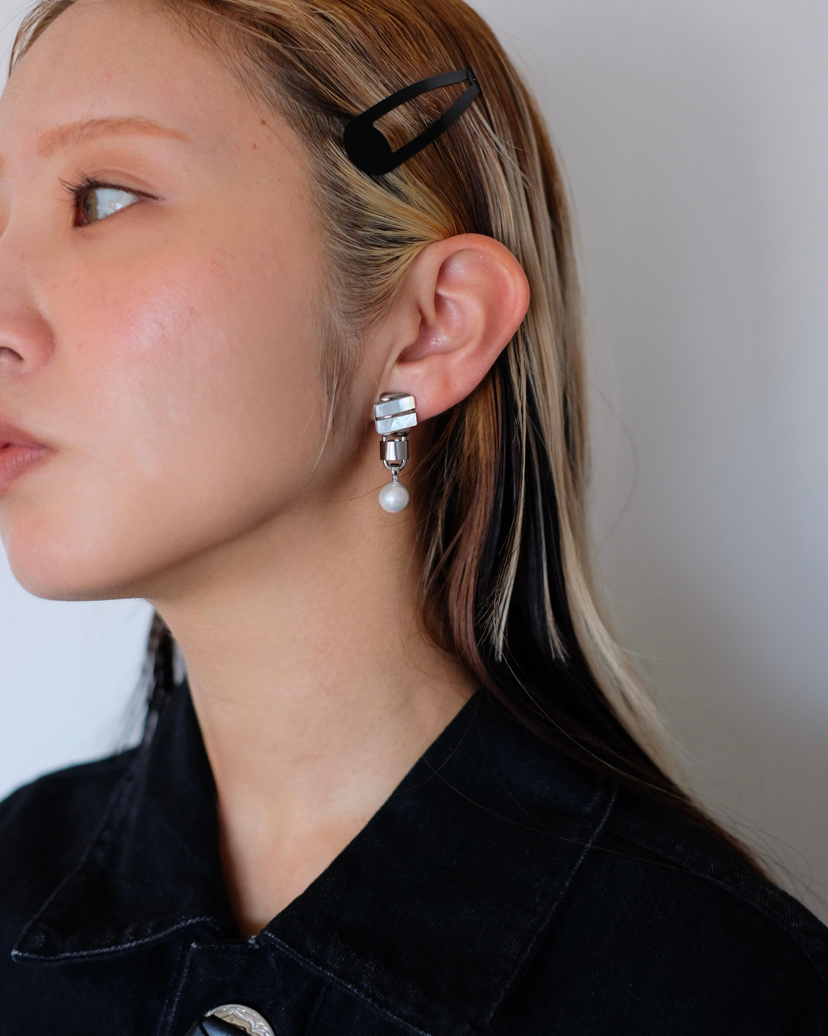 シェルのきらめきと艶に合わせたのは貝パール。