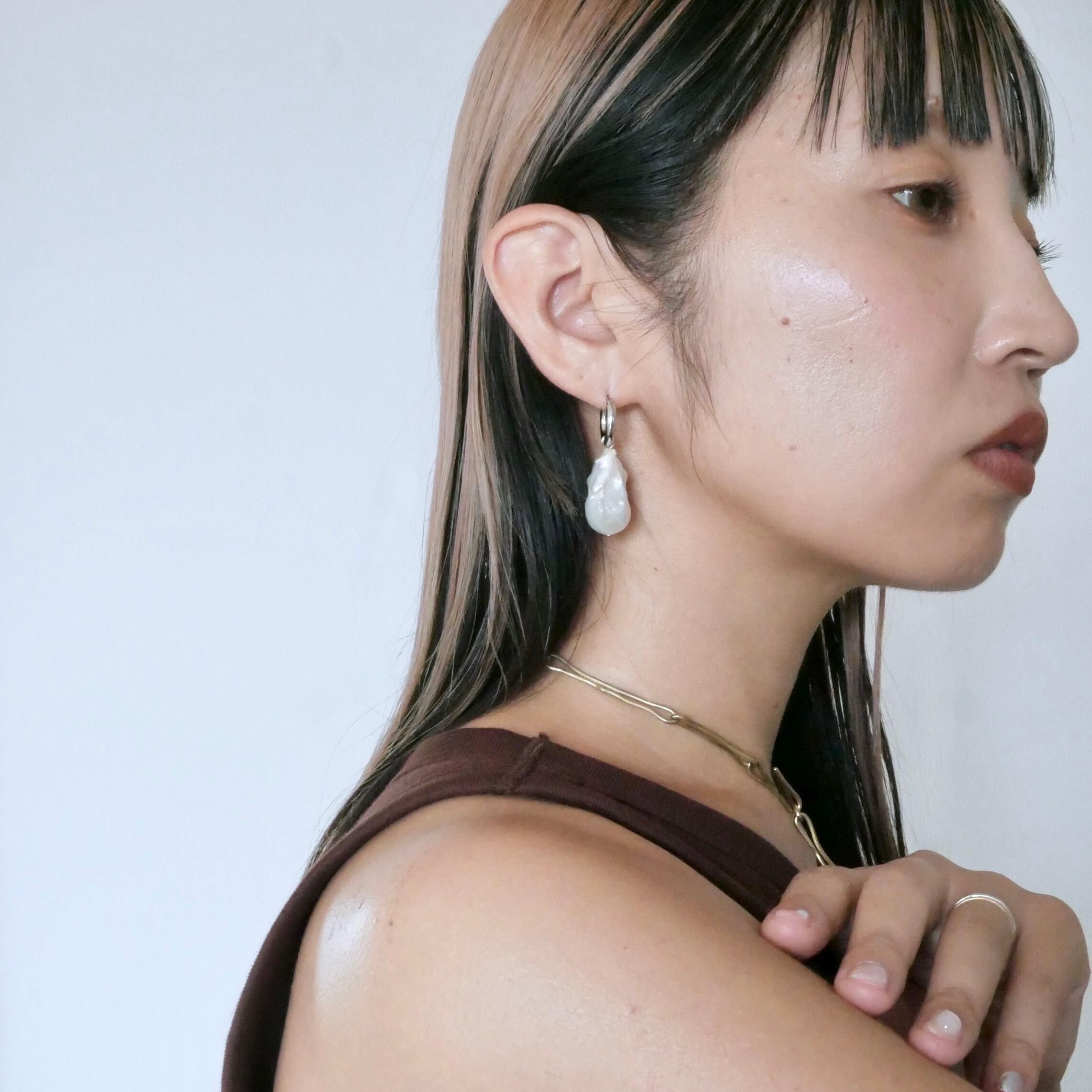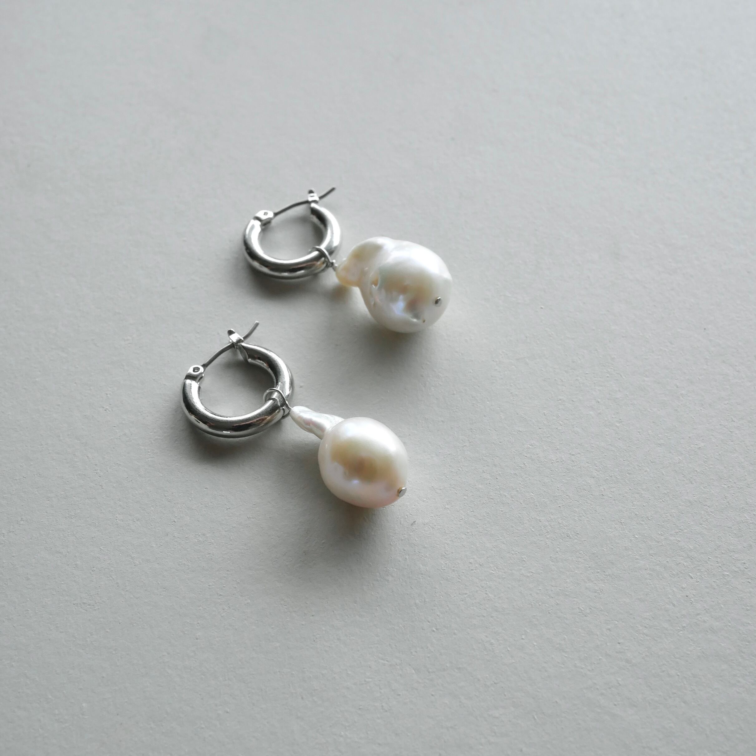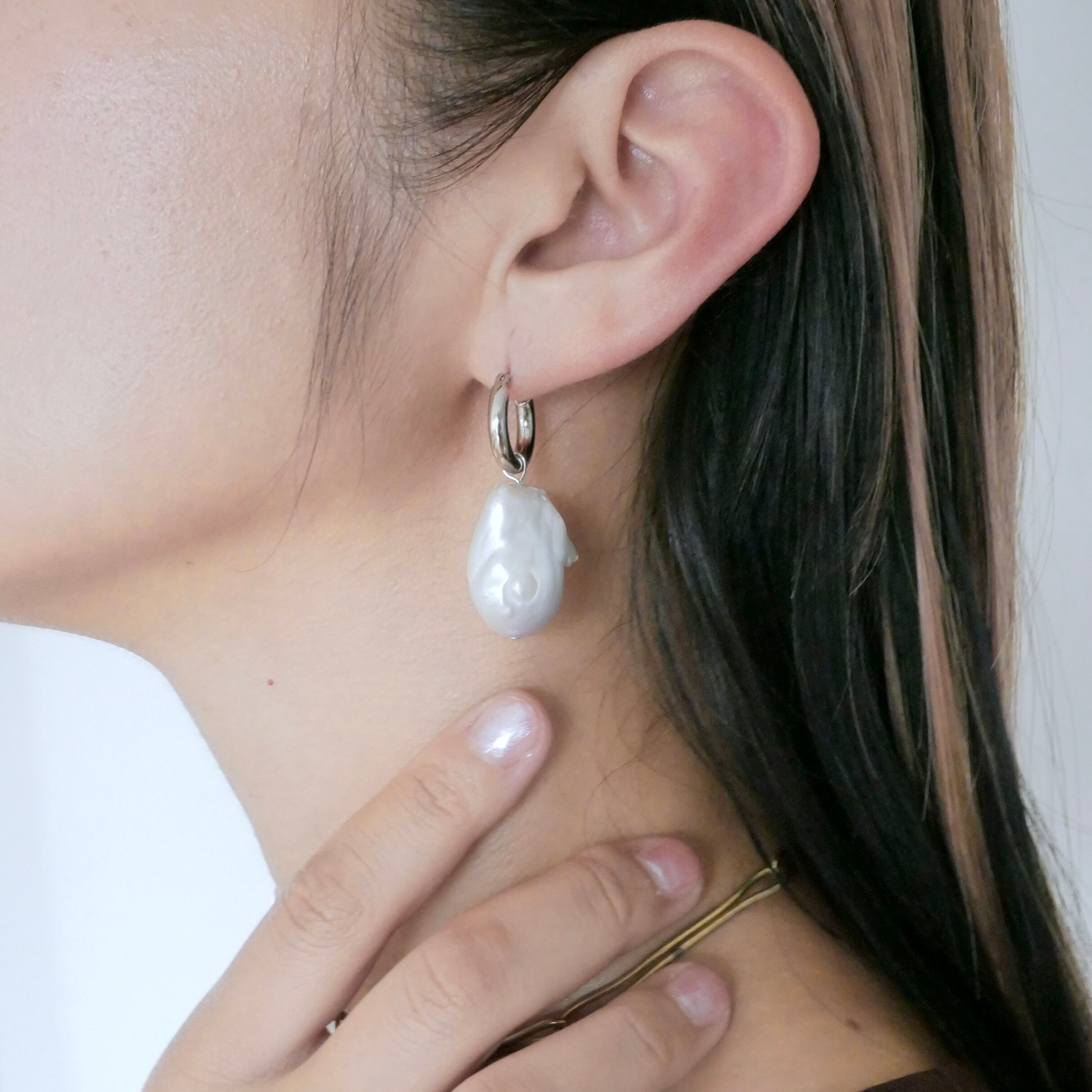素材 / チタン(ポスト部分)、真鍮+ニッケルフリーメッキ(フープ部分)、淡水パール